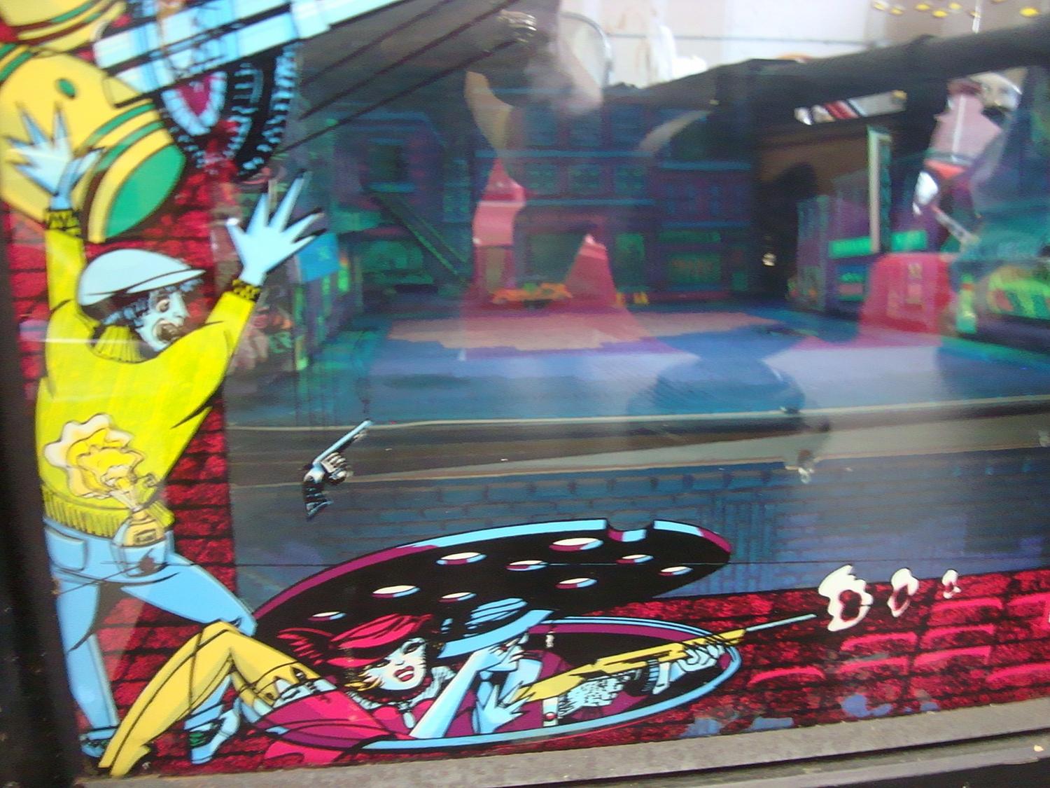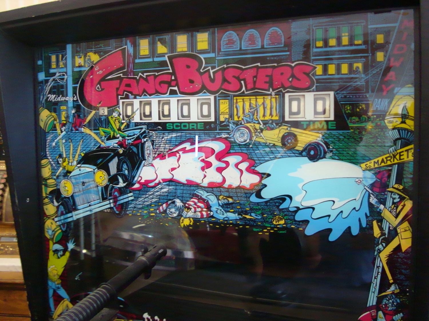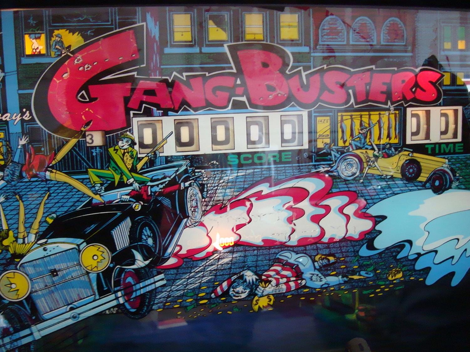 The dual-head Midway 8-track decks are configured to get the audio from the 8-track on track 2 (for the first two channels) and track 3 for the second two channels. Tracks 1 and 4 are not used. Gangbusters uses just three channels, so the right channel of track 2 is empty. The left channel of track 2 has a "roaring 20's" ditty, with siren and police sound effects in the background. Track 3 has crashing sound effects on the left channel, and a gangster on the right channel saying things like "ya got me" and "I'll get even".