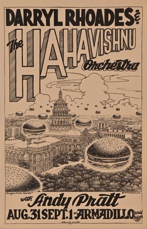 With Andy Pratt - 1977 Rick Turner. Letters by M. Priest. Austin, TX. Measures 10 7/8" x 17".