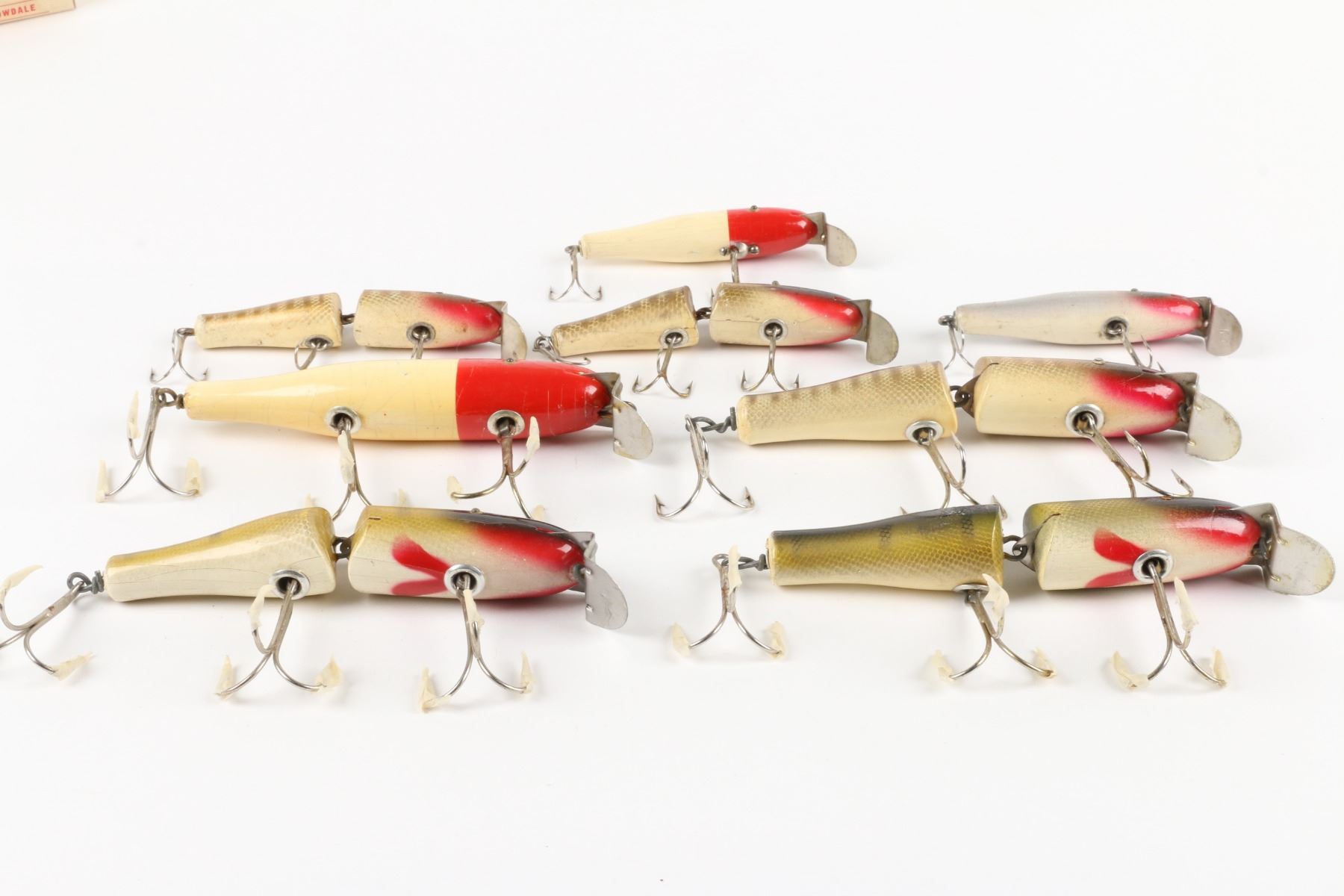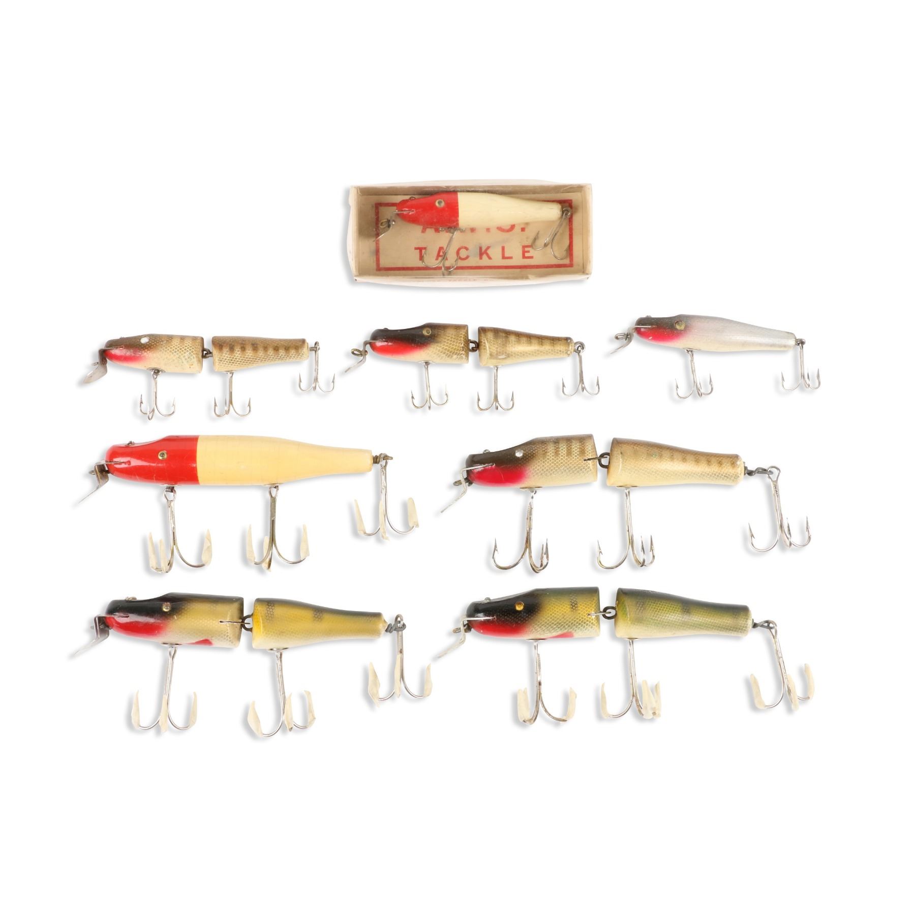 Saarima Tackle Co., Canada. 1940s. 1 Box. Material: Wood. Quantity: 8. Grade: VG. 4.5" - 6" Est. $100-125.
