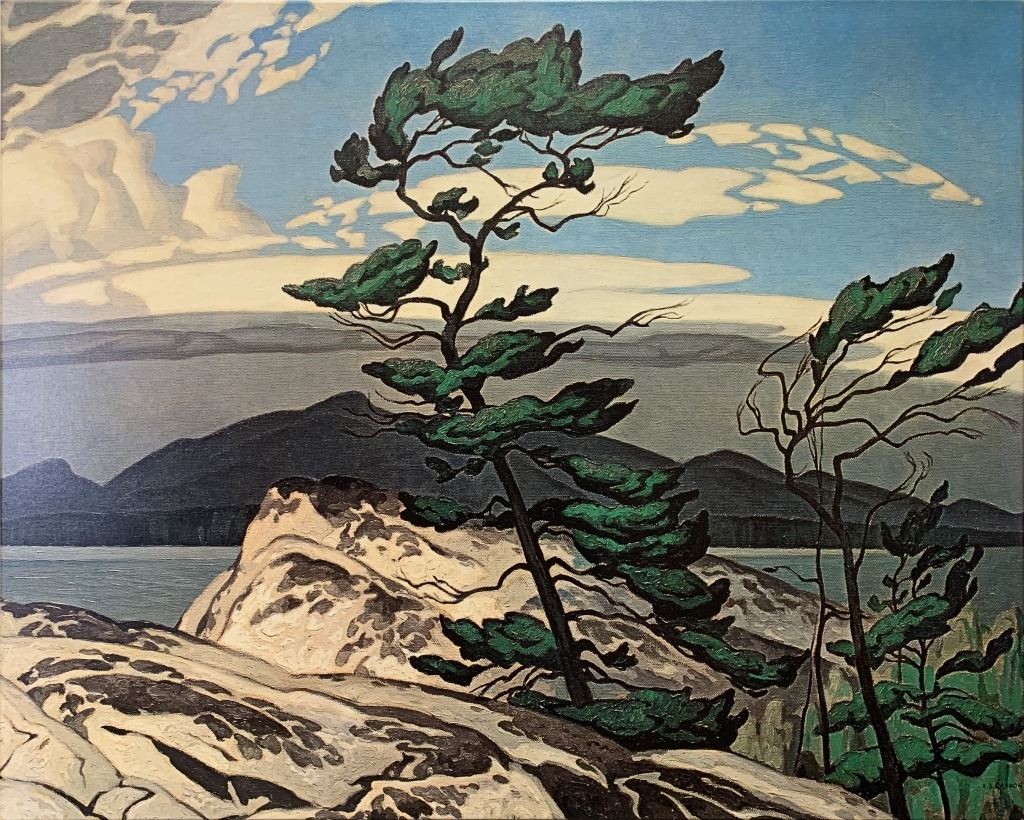 AY Jackson's "White Pine" giclee canvas reproduction. AY Jackson was a member of the famous Group of Seven. This piece has been stretched over a stretcher board, and comes 'gallery wrapped'.