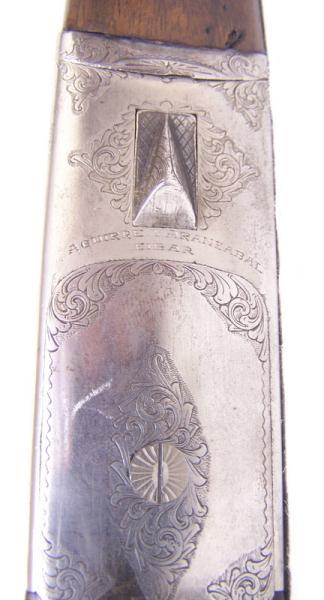 AGUIRRE y ARANZABAL - ITALIAN MADE FINE SHOTGUN - serial 2835 (20-07) - This is an older OVER UNDER 20ga shotgun - Wood is in OK condition but has a fair number of scratches and small dings - looks like it was well used and well loved - Action and Bore are GOOD - This is a VERY LIGHT shotgun - has some GREAT hand worked metal engraving - A FINE PIECE!