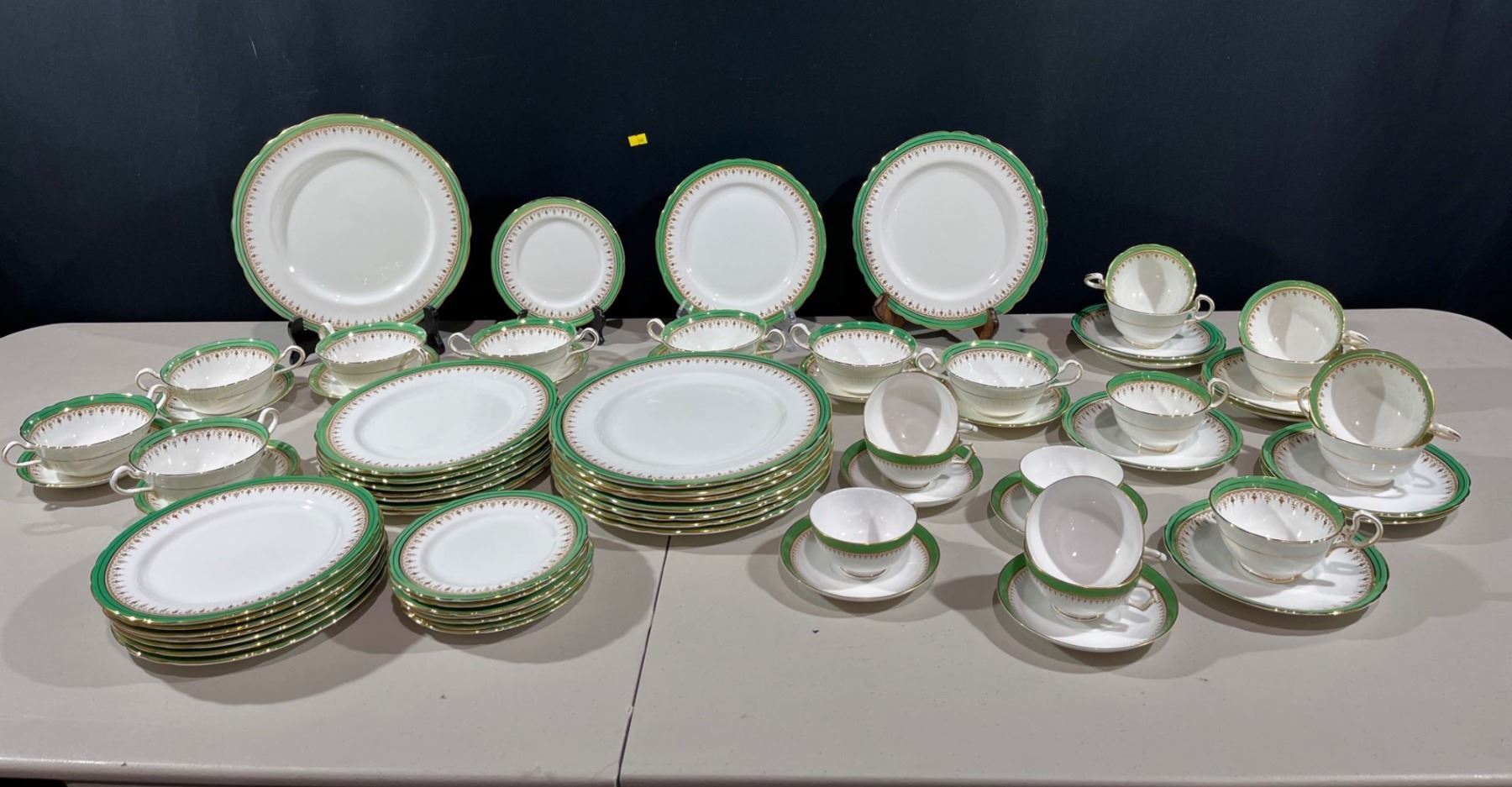 Dinner plates, Salad Plates, Lunch Plates, Appetizer/Bread Plates, Soup Bowls with Handles and Saucers, Tea Cups with Saucers, and Espresso Cups with Saucers.