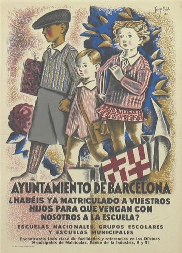 OBIOLS, JOSEP. AYUNTAMIENTO DE BARCELONA, ESCUELAS NACIONALES. 1930. 49,5x36cm. (19,5x14,2in.). Litografía. A-. Entelado.