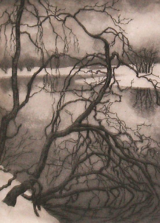 Aage Roose “Winter Scene with Lake & Trees”