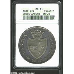 Aargau. 4 Frank 1812, KM20, MS61 ANACS, both sides of this always impressive Swiss crown are overlai