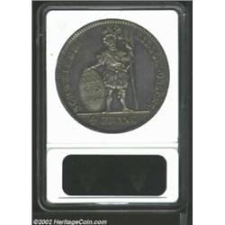Aargau. 4 Frank 1812, KM20, MS61 ANACS, both sides of this always impressive Swiss crown are overlaid in soft steel-violet and golden toning. Important notice: We expect to be auctioning lots at the rate of 200-250 per hour. Sometimes eBay Premier live bid software cannot keep up with that pace, so we strongly recommend that you place a realistic proxy bid now as insurance to avoid disappointment. Also please note that all Heritage/CAA lots purchased through eBay Premier carry a 20% Buyer's Premium. Please make sure you read the Terms and Conditions.