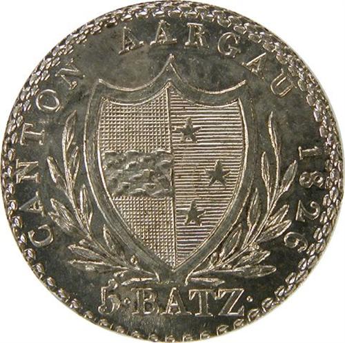 5 Batzen 1826 NGC MS-66. This is a very strongly struck and superbly lustrous piece with near flawless pale toned surfaces