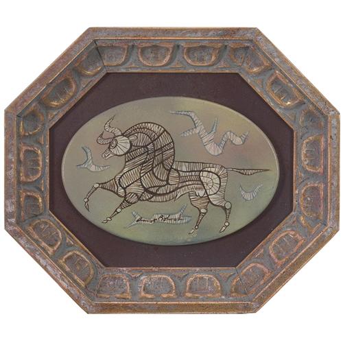 Aaron Bohrod (American,1907-1992), Bull Tile, c.1940;ceramic tile, 5.75in. x 8.5in., signed.Important Chicago modernist.Bohrod created decorative objects and designed ceramics throughout his career.