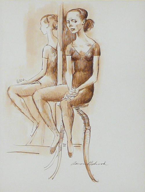Aaron Bohrod (1907-1992) Sepia Ink Wash "Ballet Dancer" Signed lower bottom 11 1/2" x 9 1/2"