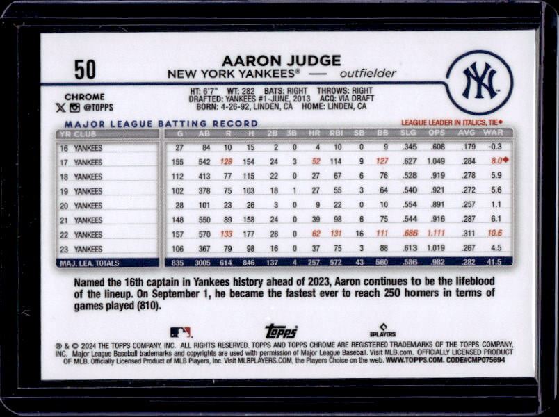 Aaron Judge 2024 Topps Chrome #50 Possible MVP Buyback?