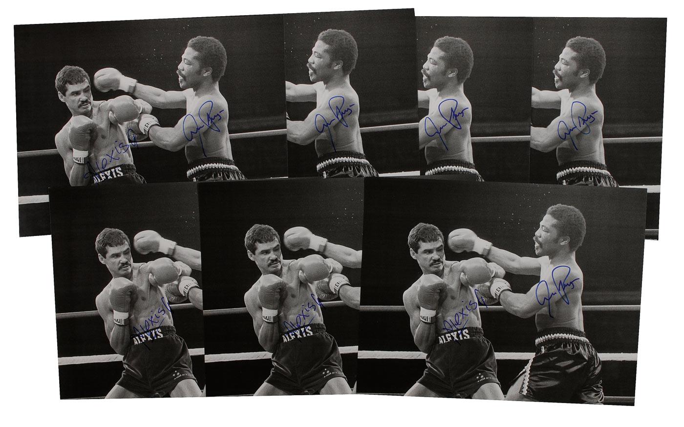 Eight intense 14 x 11 photos of Arguello and Pryor going toe-to-toe in the ring, each signed in blue felt tip by Pryor and Arguello. In very fine condition. Accompanied by 16 photos taken at time of private signing.