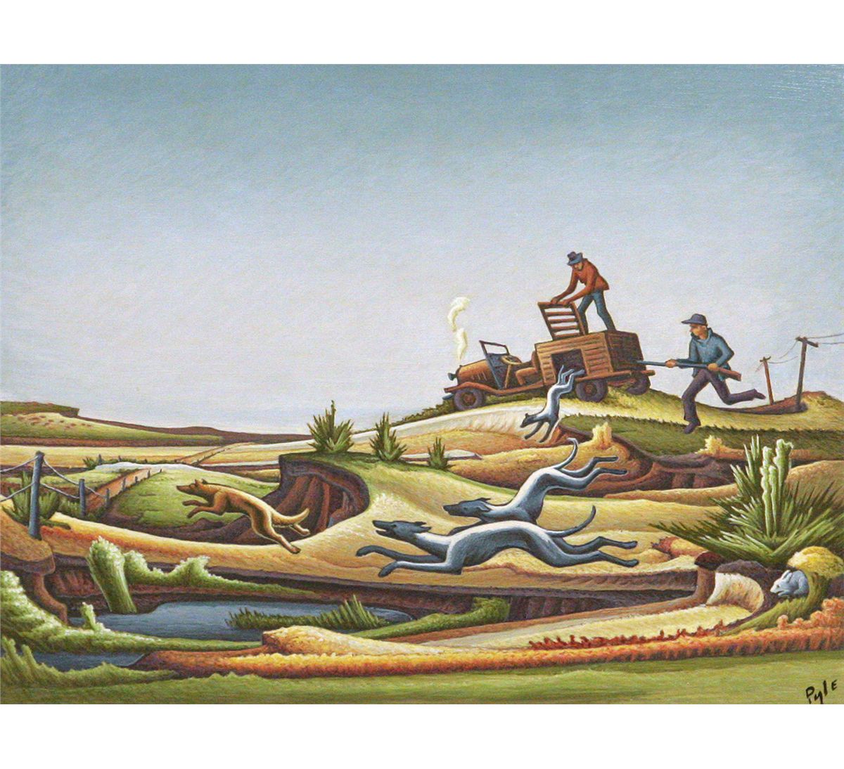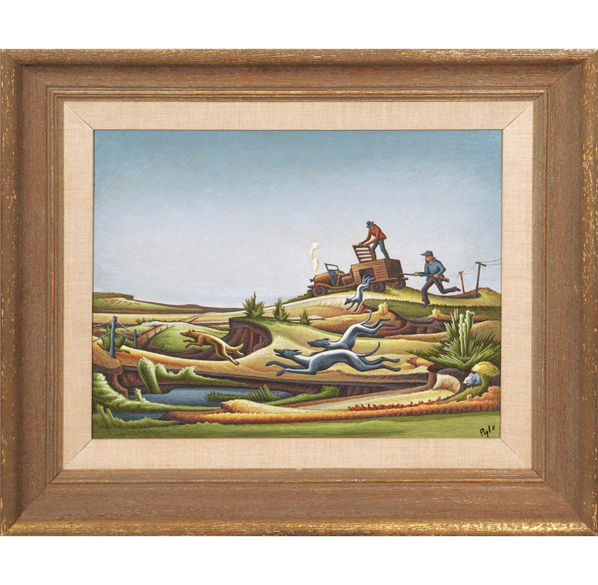 ****Aaron Gunn Pyle (1903 - 1972). The Hunt. 13.5" x 17" egg tempera on board. Signed lower right: Pyle.