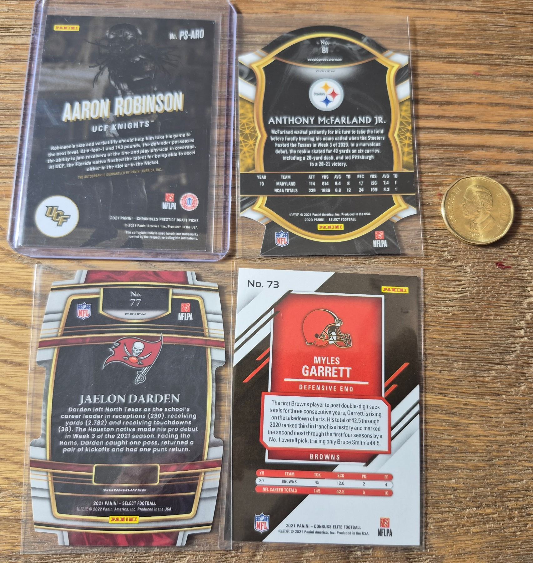 Aaron Robinson, Anthony McFarland Jr., Jaelon Darden, Myles Garrett 087/499