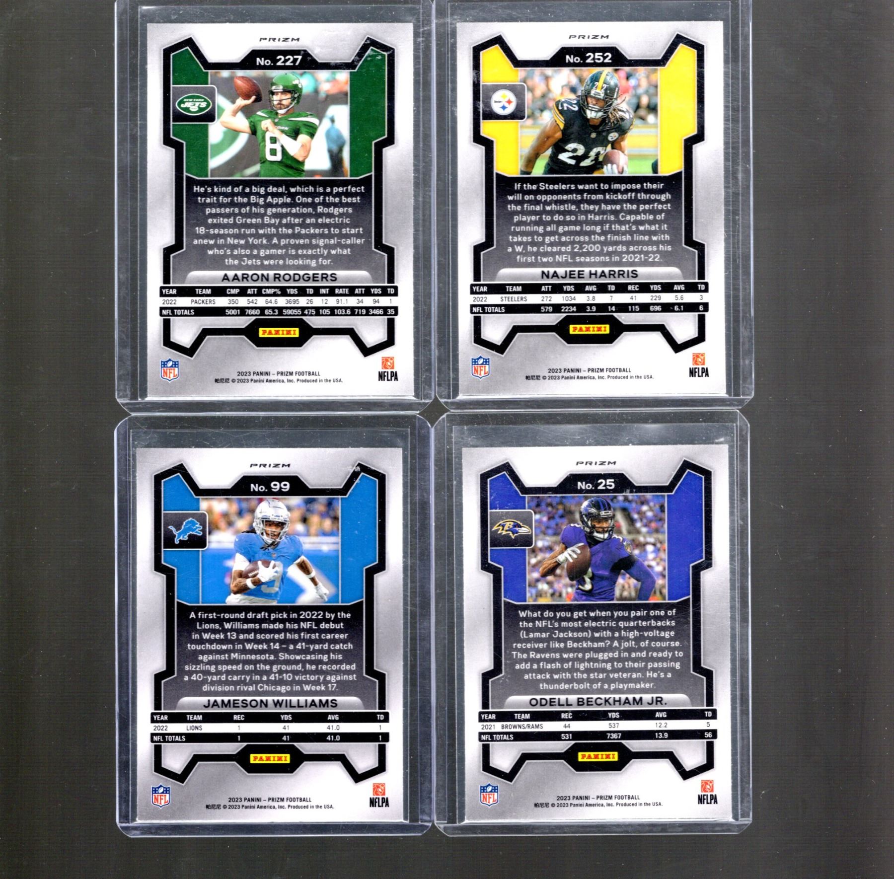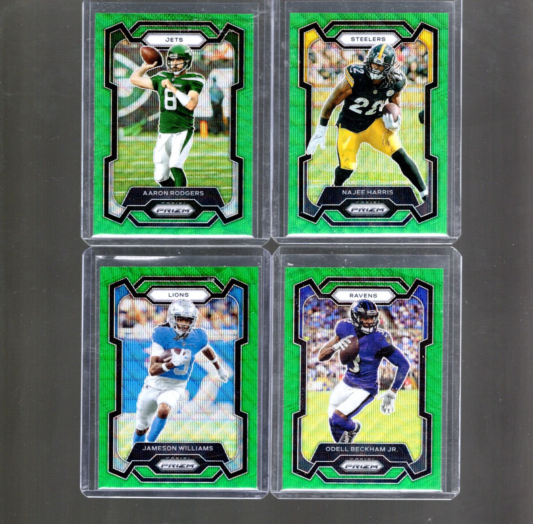 Aaron Rodgers Green Wave Prizm, Najee Harris Green Wave Prizm, Odell Beckham Green Wave Prizm, Jameson Williams Green Wave Prizm