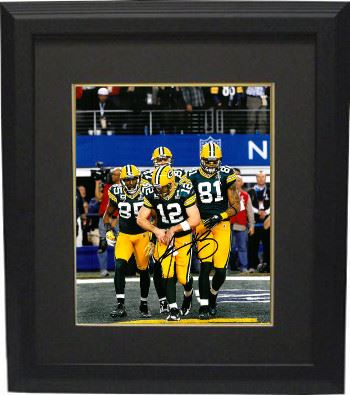Aaron Rodgers became the Green Bay Packers' starting quarterback in 2008 and led them to a victory in Super Bowl XLV after the 2010 NFL season. Rodgers was named Super Bowl MVP. As a result, he was named Associated Press Athlete of the Year in 2011. He was also voted league MVP after the 2011 NFL season, as well as being voted the top player in the league by his peers. Aaron Rodgers has hand autographed this Green Bay Packers 8x10 Photo from Super Bowl XLV doing his Championship Belt -discount double check celebration. Certificate of Authenticity from Athlon Sports. Custom Black Mat and Premium Black Frame as shown.