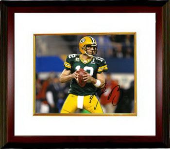Aaron Rodgers became the Green Bay Packers' starting quarterback in 2008 and led them to a victory in Super Bowl XLV after the 2010 NFL season. Rodgers was named Super Bowl MVP. As a result, he was named Associated Press Athlete of the Year in 2011. He was also voted league MVP after the 2011 NFL season, as well as being voted the top player in the league by his peers. Aaron Rodgers has hand autographed this Green Bay Packers 8x10 Photo. Certificate of Authenticity from Athlon Sports. Custom White Mat and Premium Mahogany Frame as shown.
