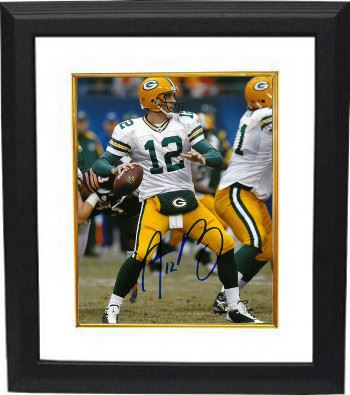 Aaron Rodgers became the Green Bay Packers' starting quarterback in 2008 and led them to a victory in Super Bowl XLV after the 2010 NFL season. Rodgers was named Super Bowl MVP. As a result, he was named Associated Press Athlete of the Year in 2011. He was also voted league MVP after the 2011 NFL season, as well as being voted the top player in the league by his peers. Aaron Rodgers has hand autographed this Green Bay Packers 8x10 Photo. Certificate of Authenticity from Athlon Sports. Custom White Mat and Premium Black Frame as shown.