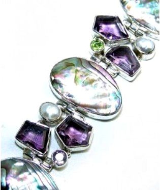 Silver & Abalone Shell, Amethyst, Pearl & Peridot Bracelet. Allow 6 to 8 weeks for delivery.