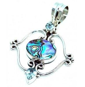 Silver and Abalone Shell & Blue Topaz Pendant. Items are hand made as ordered so please allow 6 to 8 weeks for delivery.