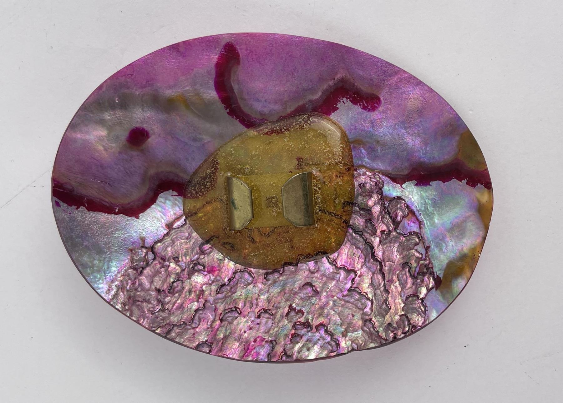 Nice piece. Dyed abalone. 2 7/8" by 4.25".