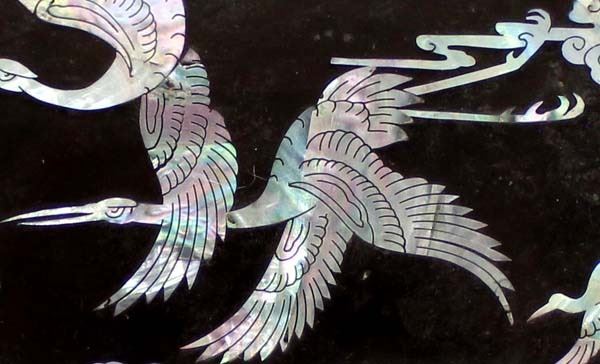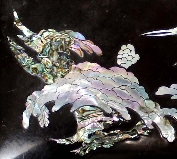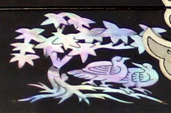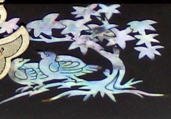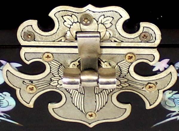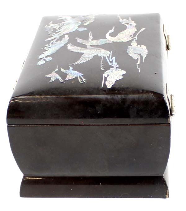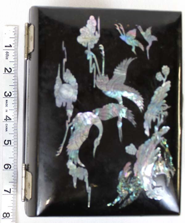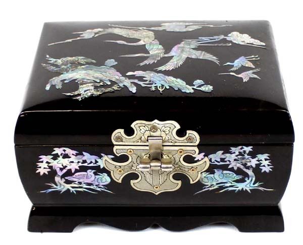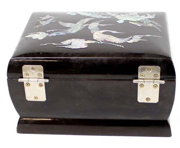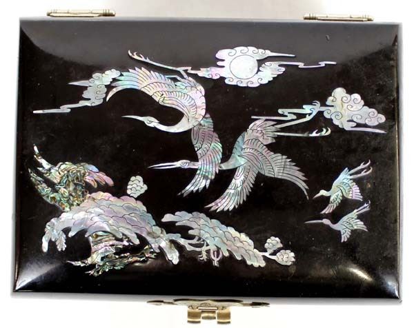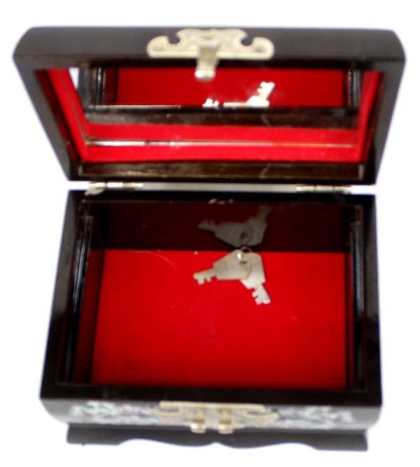Abalone Shell Inlay Jewelry Box With Key. measures 5'' x 7''.