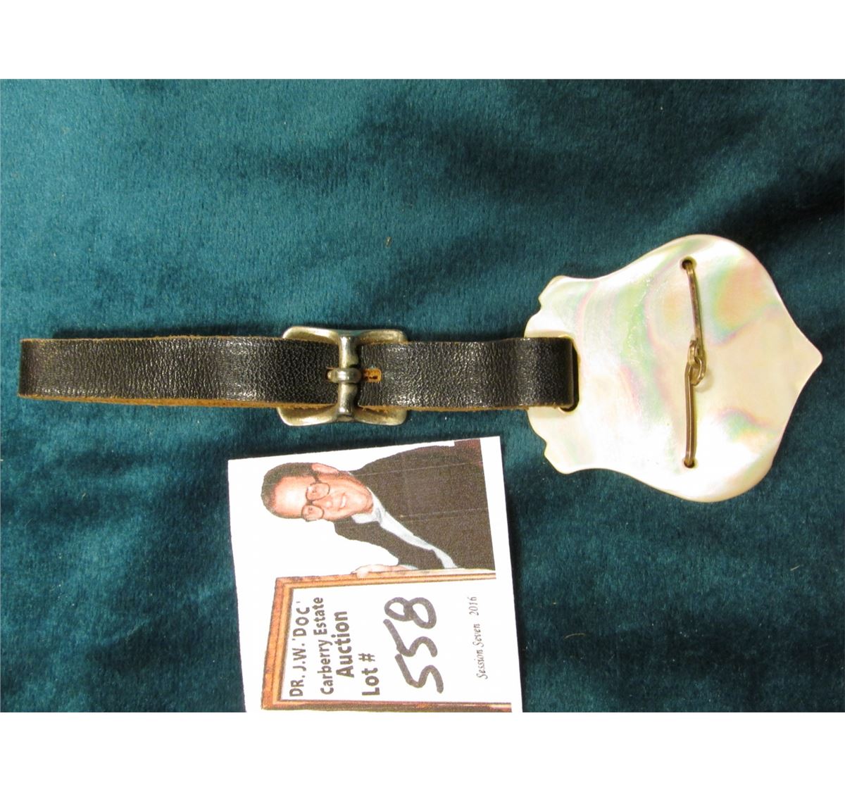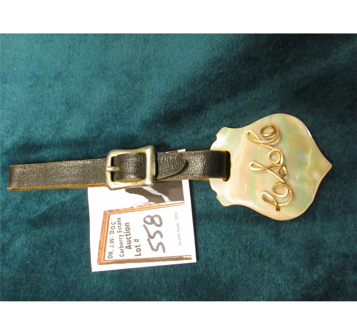 Abalone Shield with Gold-filled wire initials "CSC" includes leather Watch strap.