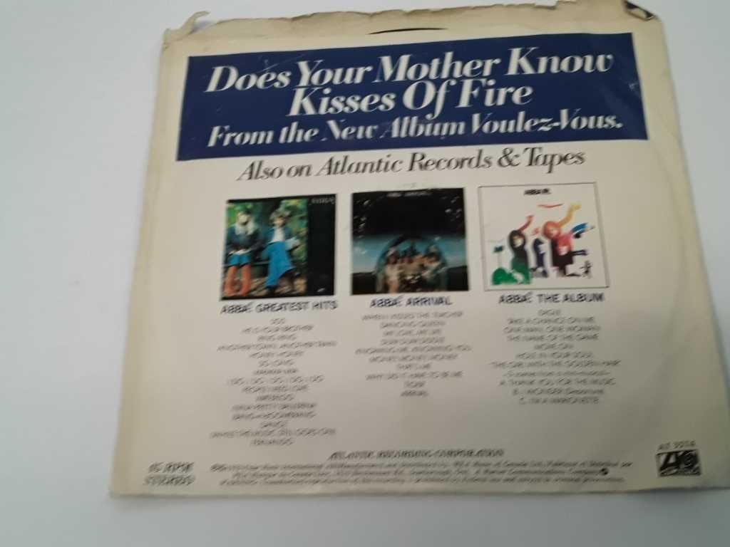 Abba 45 side one does your mother know side to kis kisses of Fire Atlantic Records excellent condition