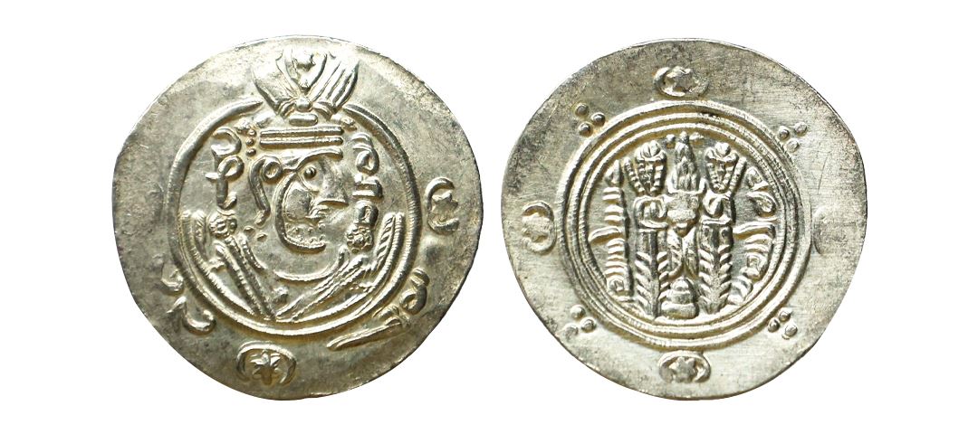 Abbasid Governors of Tabaristan, (8th Century AD), Silver Hemidrachms, 1.73 gms, Obv. Crowned and draped bust to right, Rev. Sasanian fire altar set on three steps, flanked by two attending priests standing up, extremely fine, scarce.
