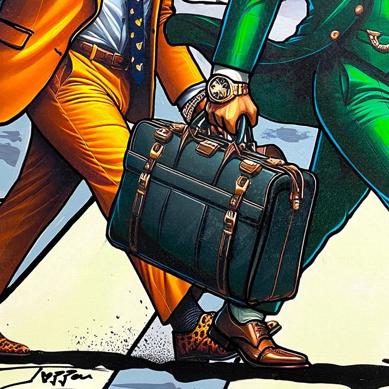 "Abbey Road" is a unique mixed media acrylic on gallery wrapped canvas by Jozza. This piece is hand signed and titled in verso. Includes Letter of Authenticity. Measures approx. 38" x 38" (image).