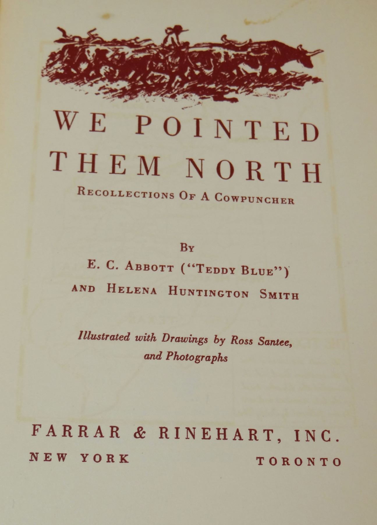 Abbott, E. C.(Teddy Blue) and Helen Huntington Smith, We Pointed Them North, 1st, 1939, vg to fine