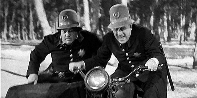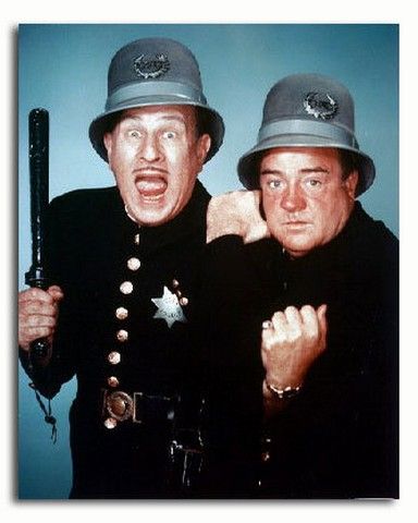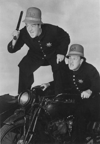 Abbott and Costello Meet The Keystone Cops Bud Abbott Worn Keystone Cop Uniform Tunic - In the early 1950's, riding high on great box-office success, Abbott and Costello began a series of "Meet The" films (as in "Meet Frankenstein", "Meet The Mummy", etc.). One of their most beloved is "Abbott and Costello Meet The Keystone Cops" (1955), taking place in 1912 where the "boys" buy a Hollywood movie studio. It was a brilliant homage to the glory days of the start of silent films, especially those of legendary Mack Sennett (who actually plays himself in the film!). With a better than average plot and dialogue (it was written by John Grant who wrote the famous "Who's On First?" routine), and the inclusion of many of the surviving members of cast and crew from the golden age of the "flickers", this became one of their top box office successes. This is one of the actual "Keystone Cop" uniform tunics worn by Bud Abbott in the film. It includes the original Western Costume label with "Bud Abbott" typed in.