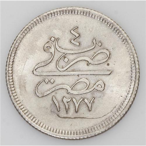<B>Abdul Aziz 5 Piastres 1277AH Year 4, </B></I>KM253.1, choice AU-UNC, fully lustrous with very light toning. Rare quality.
