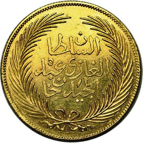 <B>Abdul Mejid with Muhammad al-Sadiq gold 100 Piastres 1276AH (1860), </B></I>KM141, nice lustrous XF-AU, rare one-year type.