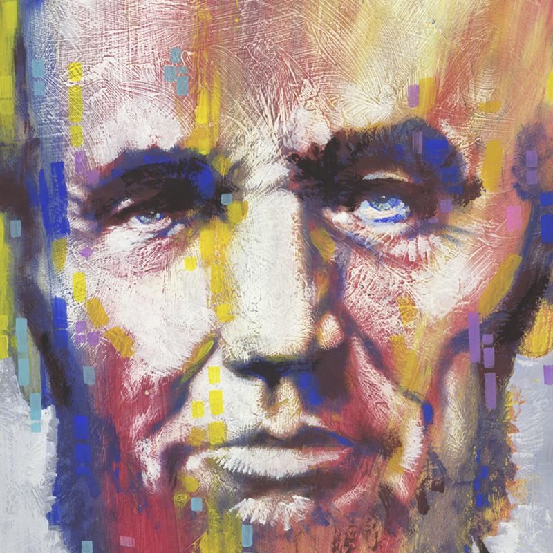With bright colors and expressive lines, Stephen Fishwick puts a unique spin on pop culture portraits. "Abe" is a limited edition giclee on stretched canvas, numbered and bears the artist's authorized signature. This piece comes gallery wrapped and ready to hang! Includes Certificate of Authenticity! Measures approx. 16" x 20" (image).