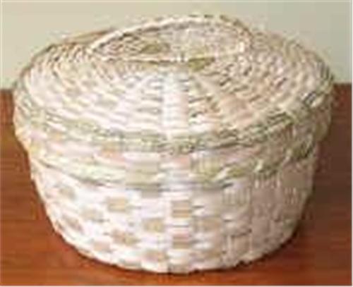 The baskets are made using sweetgrass and ash splint weaved into beautiful patterns. Measurements below reflect the size of the actual basket, not the outer decorations (i.e. small handles, exterior curls or points).Height: 4" (10 cm)