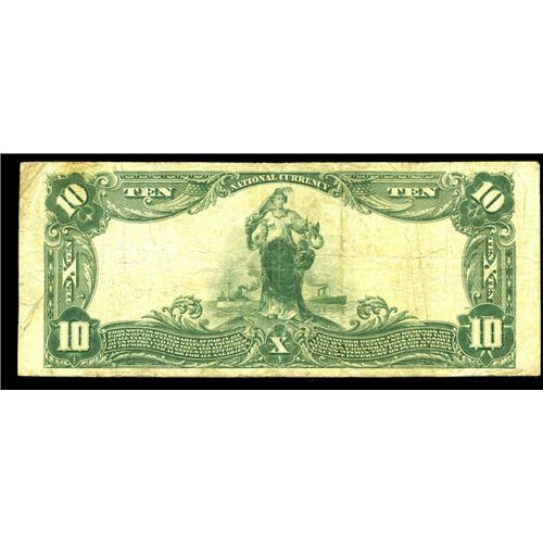 <B>Aberdeen, WA</B></I> - $10 1902 Plain Back Fr. 635 <B>The American NB</B></I> Ch. # 13091<BR>The American operated for less than five years before being voluntarily liquidated on December 4, 1931 and then being absorbed by Aberdeen National. This bank then became responsible for the redemption of the American's outstanding circulation. The census has counted just 8 large on this elusive bank and that does not include this $10. Printed signatures of J.H. Fuller and Gaylord Adams highlight this <B>Fine</B></I> note.