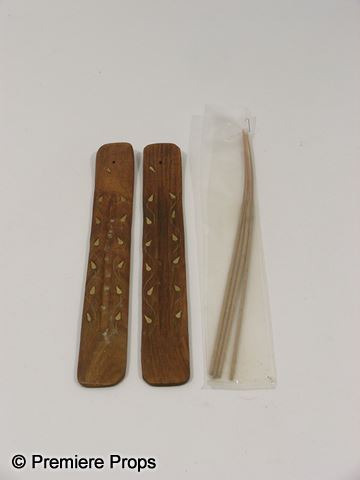 About Sarah (1998) - Two brown with gold leaf design incense holders with brown incense sticks.