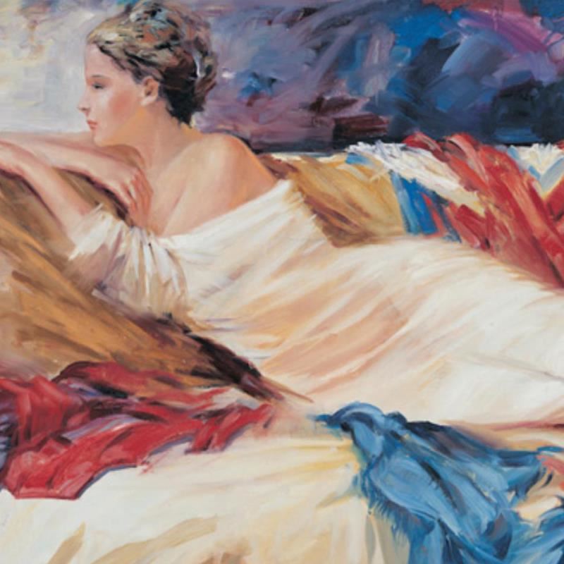 "About to Sleep" is a limited edition Giclee on Canvas by Igor Semeko. The piece is numbered, hand siged by the artist, and come with a letter of authenticity. Measures approximately 20" x 30".