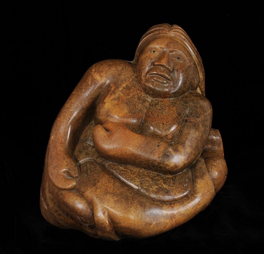 Abraham Anghik Ruben Sculpture of a Woman, Child, Raven, Beluga, Bear Cub and Walrus 22 1/2" H. 21" W. 19" Deep Over 200 LBS Good Condition