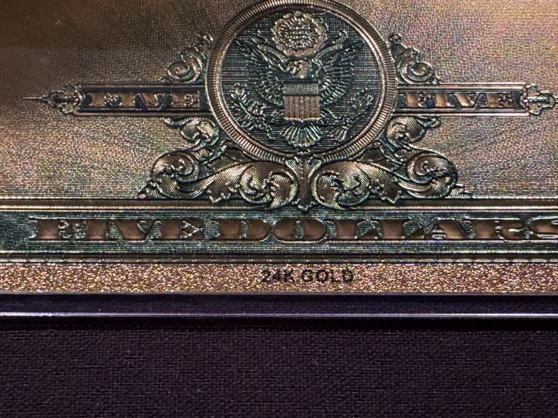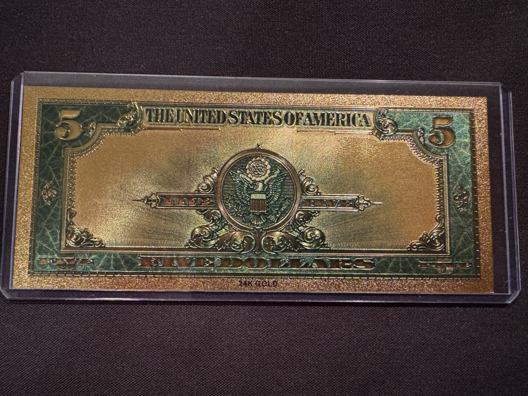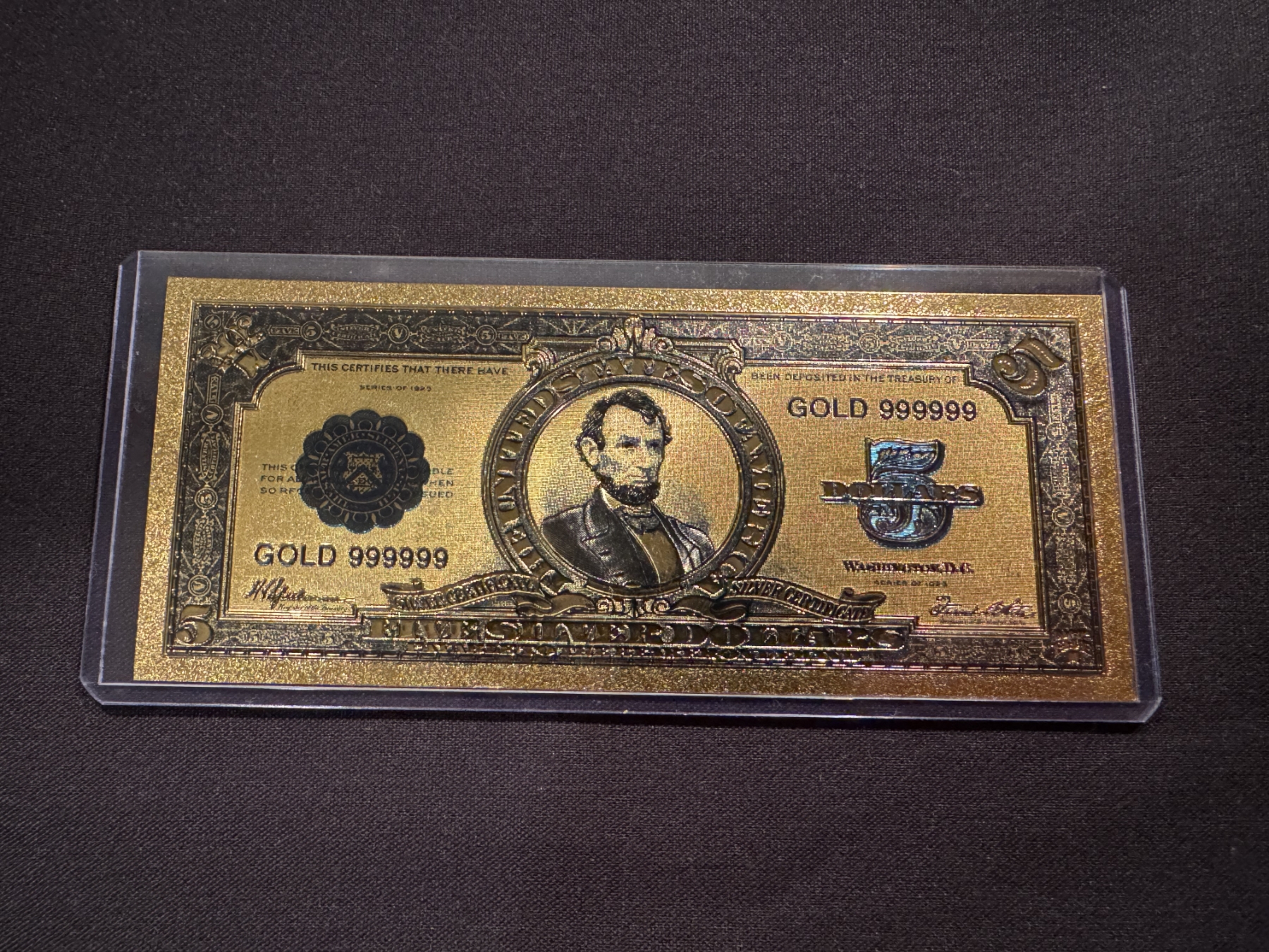 Abraham Lincoln $5.00 Gold Back .999999 - 24K Note In Protective Holder - Mint Condition