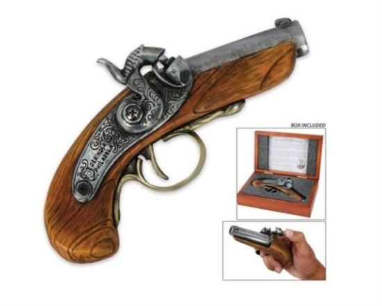 Replica non-firing version of the Derringer that was used to shoot President Abraham Lincoln with presentation boxReplica measures 6" overall