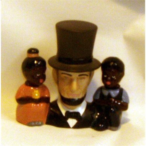 </font></strong>This set of nodder salt & pepper shakers was the official shaker issue of the 1991 Salt & Pepper Shaker Club of America's 1991 convention, which took place in Chicago, Ill. Portrayed in his characteristic stovepipe hat, Lincoln is flanked by a black boy and girl. It is the children's heads which nod. This set is in excellent condition, with no defects.</font>