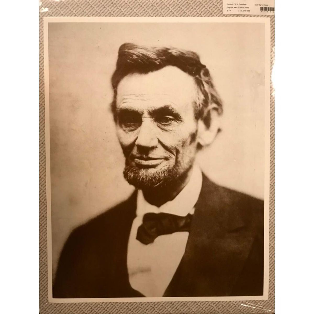 Abraham Lincoln sepia-tone photo print. Created in the early 1990's for The American Heritage Galleries. Printed on cardstock, in original gallery packaging. 11" X 14".Â