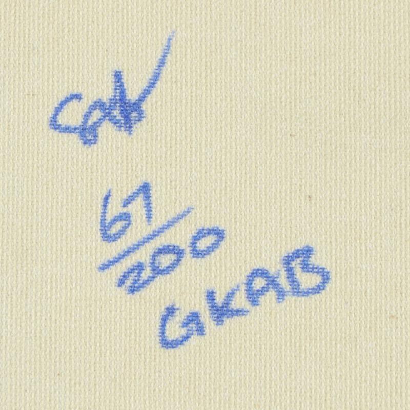 "Abraham Lincoln" is a limited edition hand pulled silkscreen on canvas by Andy Warhol protege Steve Kaufman (1960-2010). This piece is numbered 67/200 and hand signed inverso. Includes letter of authenticity. As is common with Kaufman's works, this piece may have perceived minor flaws, but is in overall good condition. Measures approx. 20" x 20" (image). There is minor creasing in the border area (from being previously stretched) that will be concealed when re-stretched.