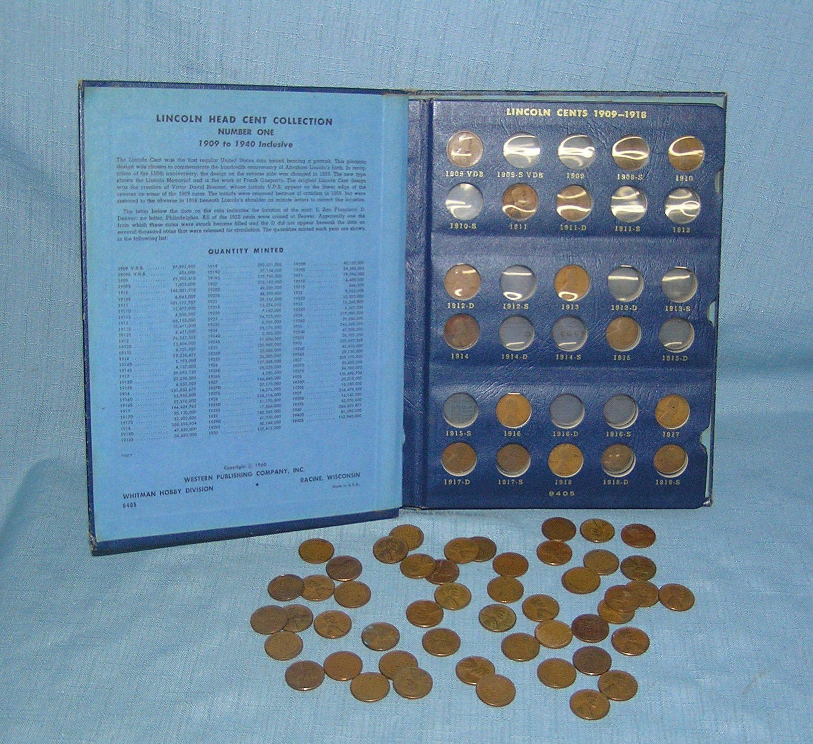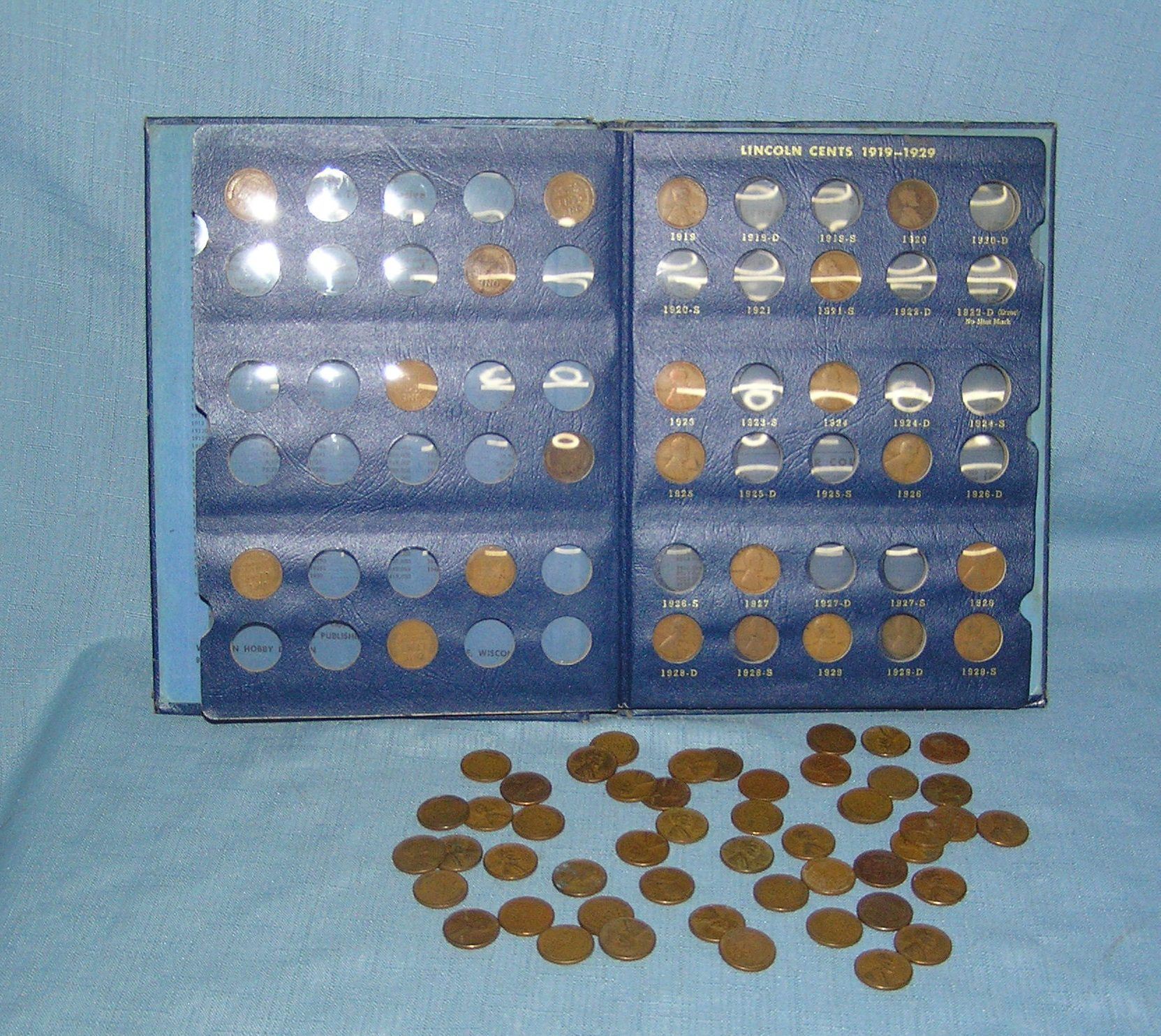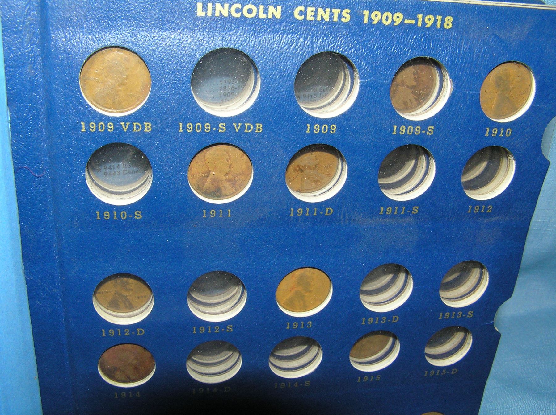 Abraham Lincoln US penny collection early 1900s through 1950s including a 1909 VDB, 1910, 1911, 1913, 1916, 1917, 1918, 1919, 1920 plus many more est. value $200.00-$225.00