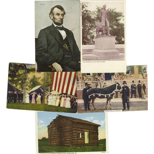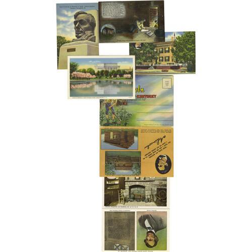 <B>Abraham Lincoln in Postcards</B></I> Yet another lot of more than 700 color postcards with some black and white real-photo postcards from 1900 to the mid-1960s. Subjects range from formal portraits of Lincoln to monuments in Washington, Springfield, and beyond. Includes many early twentieth century examples with numerous soft-colored cards from the 1910s to the 1930s and some 1909 centennial pieces. Includes a fine collection of postcard sets from a wide range of places including Mount Rushmore, Washington, Illinois, Kentucky, and Indiana. Also includes some brilliant examples of mid-century roadside Americana regaling in tacky splendor, rich in oversaturated hues, and amateur composition. Some have been postal used. Numerous duplicates, condition varies as expected, but overall very good, should be viewed.<BR><BR><b>Shipping:</b> Miscellaneous Collectibles, Larg (<a target="_blank" href="http://www.heritageauctions.com/common/shipping.php">view shipping information</a>) <BR><BR><B>Important notice: