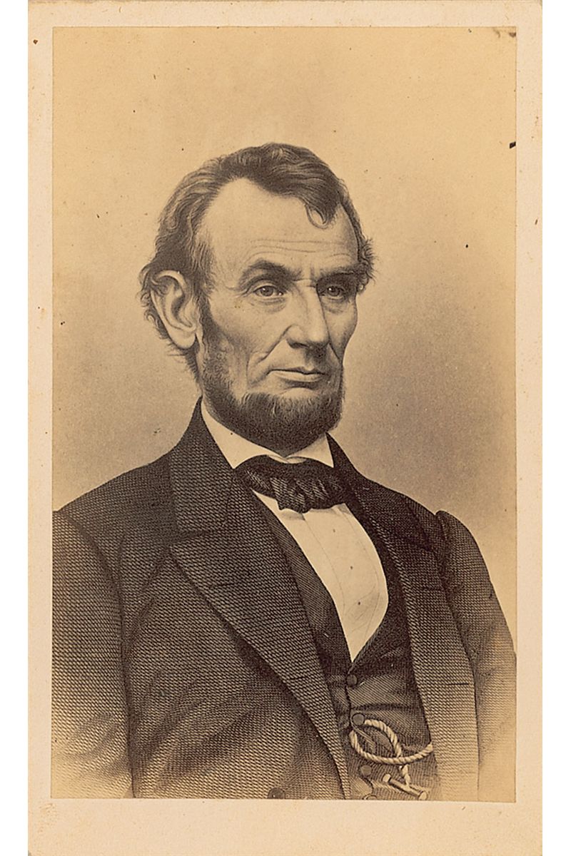 Unsigned original 2.25 x 4 carte-de-visite of an iconic illustrated portrait of Lincoln, by T. R. Burnham of Boston. In fine condition.