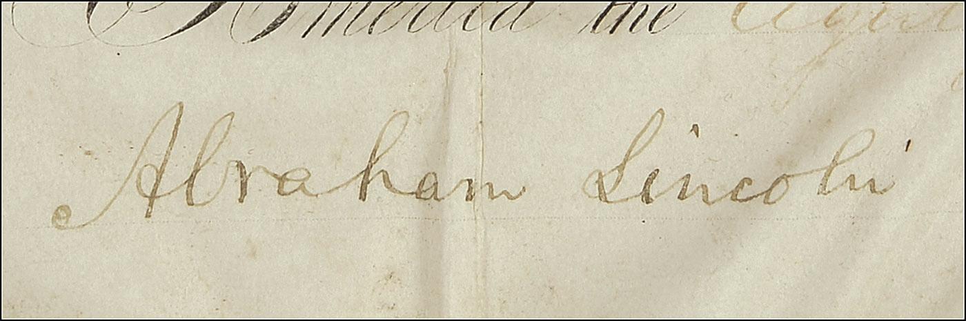 Particularly rare partly-printed vellum war-dated DS as president, one page, 15.25 x 14, November 12, 1861. Lincoln appoints Daniel B. Hodgsdon to the position of “Third Lieutenant in the Revenue Service of the United States.” Signed at the conclusion by Lincoln, and countersigned by Secretary of the Treasury Salmon P. Chase. Heavy intersecting folds, one through a single letter of signature, moderately heavy overall rippling, handwritten portions of document light, but mostly legible, and some light soiling and foxing, mainly to the edges, otherwise very good condition. Lincoln’s signature remains very legible.