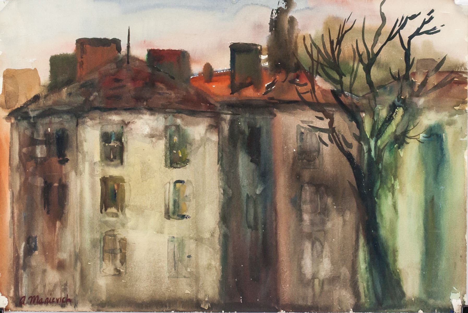 Pastel on paper. Featuring a landscape scene. Signed A. Manievich on the lower left corner. Attributed to Abraham A. Manievich (1881-1942, Ukrainian-Russian). 31 x 46 cm (12.25 x 18 inches). PROVENANCE: This lot carries limited provenance from a Southern Ontario estate