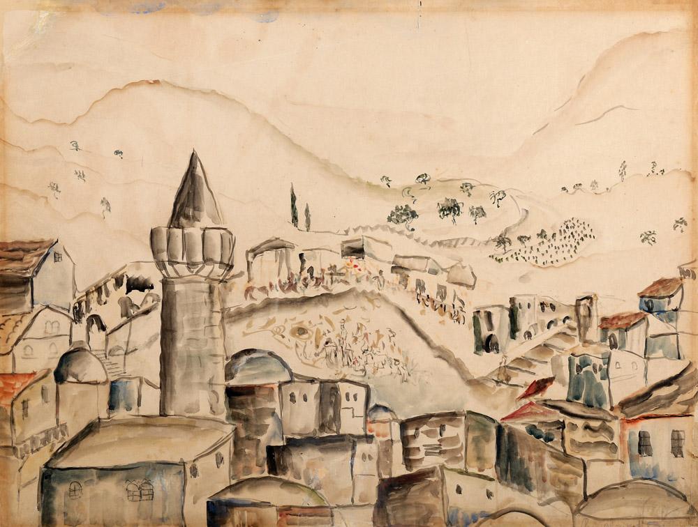 Abraham Melnikoff, Israeli Art, 1892 - 1960, Ein Kerem, Watercolor, 37x48cm, Signed., , , , ,